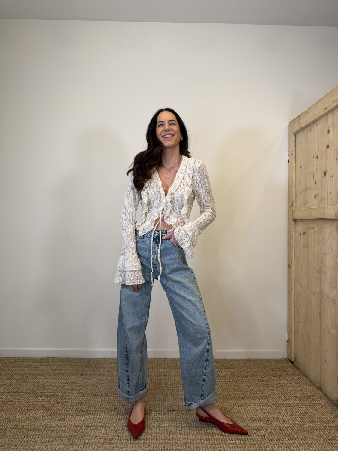 jeans a gamba larga, vita alta, elasticizzato