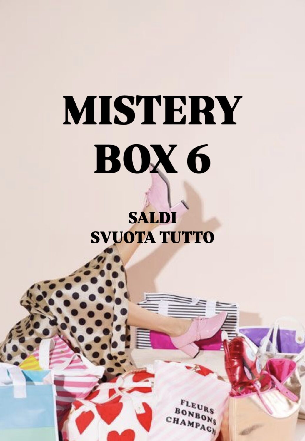 Nella nostra MISTERY BOX 6 SALDI, troverete sempre 6 articoli di abbigliamento, 2 accessori e un CODICE SCONTO di €10 DA UTILIZZARE NEL TUO PROSSIMO ORDINE.
